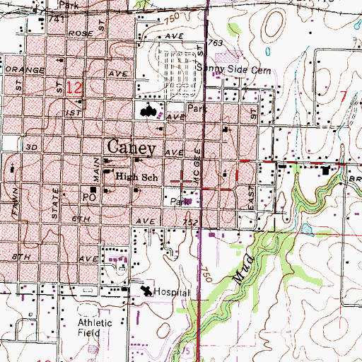 You can view this location or feature in our Topographic Map Viewer now. Click on map above to begin viewing in our Map Viewer. Here are some other places near Caney City Library that may be of interest: