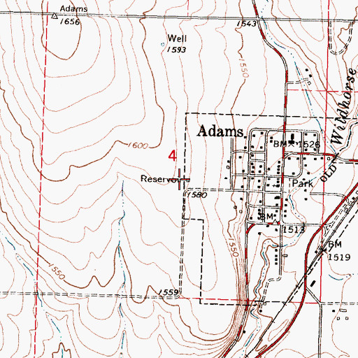 Adam Public Works Department, Oregon Adam Public Works Department is a building located in Umatilla County, OR at N45.76745° W118.56959° (NAD83) and at an elevation of 1581 ft MSL. It can be seen on the USGS 1:24K topographic map Adams, OR.