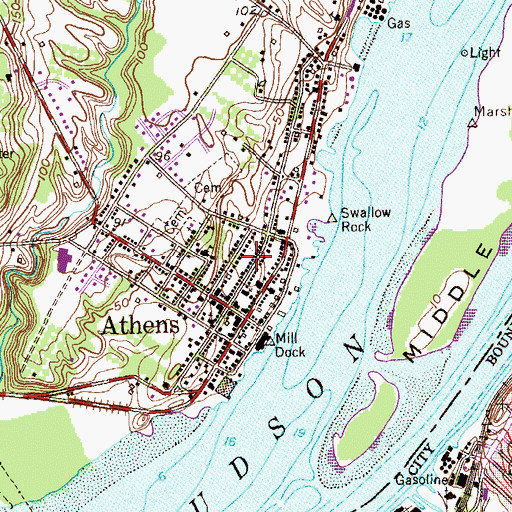 Athens Fire Department, New York Athens Fire Department is a building located in Greene County, NY at N42.26215° W73.80872° (NAD83) and at an elevation of 29 ft MSL. It can be seen on the USGS 1:24K topographic map Hudson North, NY.