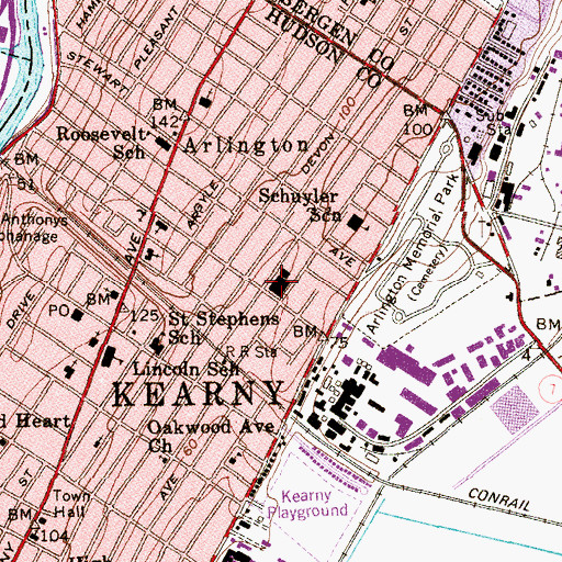 Kearny Police Department, New Jersey Kearny Police Department is a building located in Hudson County, NJ at N40.77213° W74.13791° (NAD83) and at an elevation of 78 ft MSL. It can be seen on the USGS 1:24K topographic map Orange, NJ.