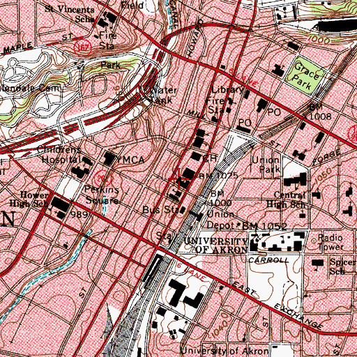 You can view this location or feature in our Topographic Map Viewer now. Click on map above to begin viewing in our Map Viewer. Here are some other places near Akron Police Department that may be of interest: