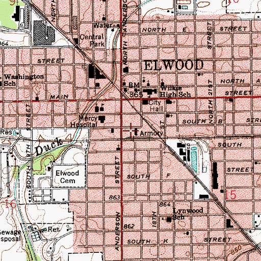 You can view this location or feature in our Topographic Map Viewer now. Click on map above to begin viewing in our Map Viewer. Here are some other places near Elwood Police Department that may be of interest: