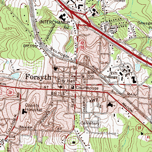 You can view this location or feature in our Topographic Map Viewer now. Click on map above to begin viewing in our Map Viewer. Here are some other places near Forsyth Commercial Historic District that may be of interest: