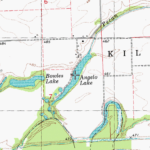 Angelo Lake, Illinois Angelo Lake is a lake located in Mason County, IL at N40.11470° W90.03771° (NAD83) and at an elevation of 456 ft MSL. It can be seen on the USGS 1:24K topographic map Newmansville, IL.