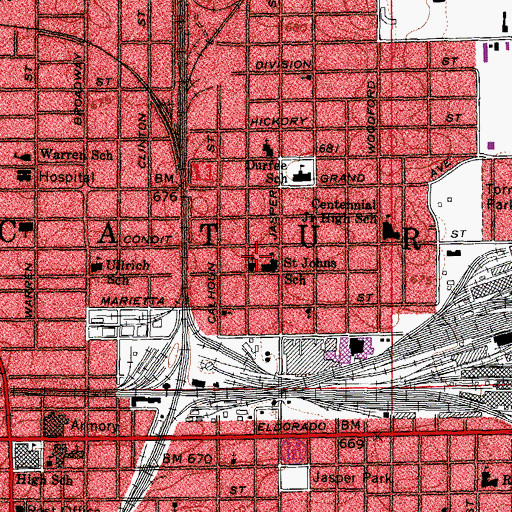 Saint Johns School, Illinois Saint Johns School is a school located in Macon County, IL at N39.85254° W88.94174° (NAD83) and at an elevation of 669 ft MSL. It can be seen on the USGS 1:24K topographic map Decatur, IL.