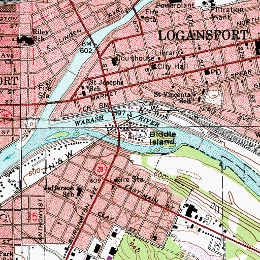 Biddle Island, Indiana Biddle Island is a island located in Cass County, IN at N40.74976° W86.36472° (NAD83) and at an elevation of 593 ft MSL. It can be seen on the USGS 1:24K topographic map Anoka, IN.