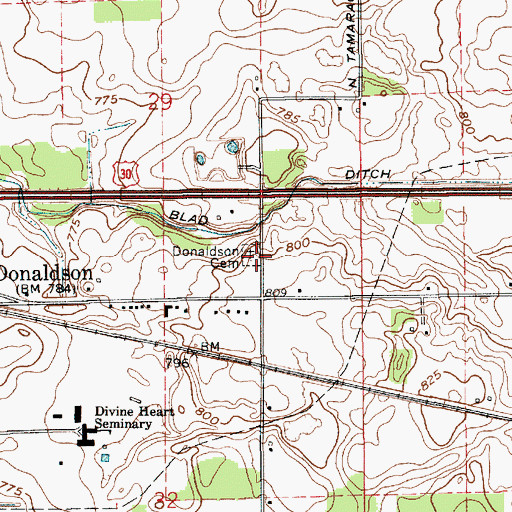 You can view this location or feature in our Topographic Map Viewer now. Click on map above to begin viewing in our Map Viewer. Here are some other places near Donaldson Cemetery that may be of interest: