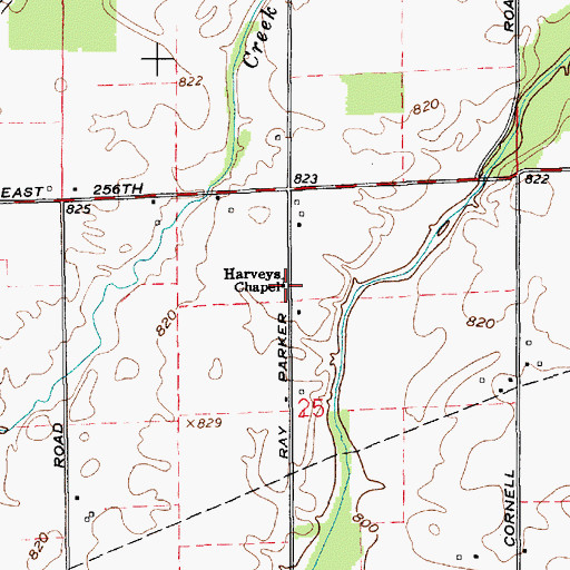 Harveys Chapel, Indiana Harveys Chapel is a church located in Hamilton County, IN at N40.15920° W85.91137° (NAD83) and at an elevation of 830 ft MSL. It can be seen on the USGS 1:24K topographic map Omega, IN.