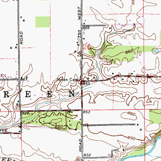 You can view this location or feature in our Topographic Map Viewer now. Click on map above to begin viewing in our Map Viewer. Here are some other places near Jones Cemetery that may be of interest: