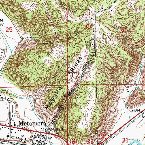 McGuire Ridge, Indiana McGuire Ridge is a ridge located in Franklin County, IN at N39.45616° W85.12885° (NAD83) and at an elevation of 918 ft MSL. It can be seen on the USGS 1:24K topographic map Metamora, IN.