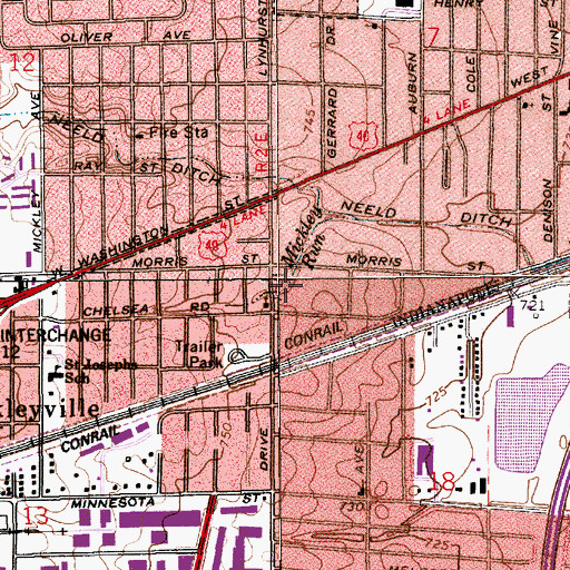 Mickley Run, Indiana Mickley Run is a stream located in Marion County, IN at N39.74977° W86.24971° (NAD83) and at an elevation of 741 ft MSL. It can be seen on the USGS 1:24K topographic map Maywood, IN.