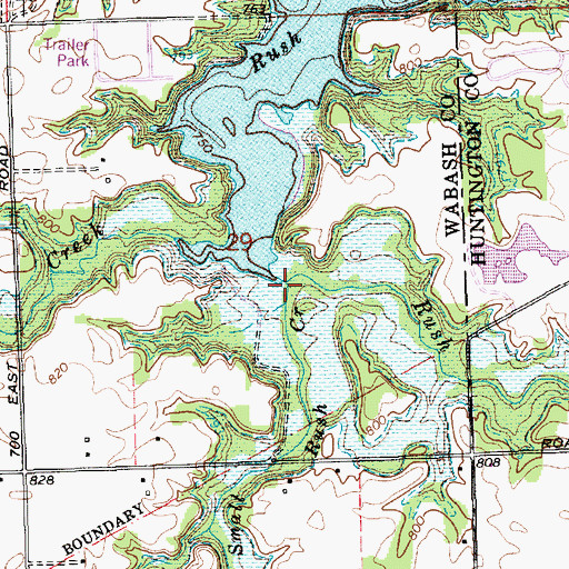 Small Rush Creek, Indiana Small Rush Creek is a stream located in Wabash County, IN at N40.76060° W85.64803° (NAD83) and at an elevation of 754 ft MSL. It can be seen on the USGS 1:24K topographic map Lagro, IN.