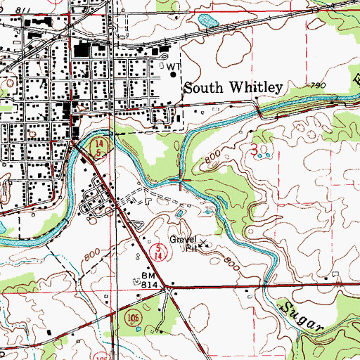 Sugar Creek, Indiana Sugar Creek is a stream located in Whitley County, IN at N41.08088° W85.62054° (NAD83) and at an elevation of 784 ft MSL. It can be seen on the USGS 1:24K topographic map South Whitley East, IN.