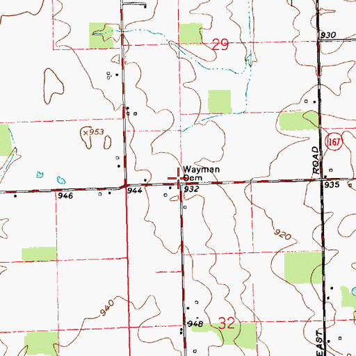 You can view this location or feature in our Topographic Map Viewer now. Click on map above to begin viewing in our Map Viewer. Here are some other places near Wayman Cemetery that may be of interest:
