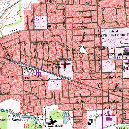 West View Elementary School, Indiana West View Elementary School is a school located in Delaware County, IN at N40.19504° W85.42608° (NAD83) and at an elevation of 938 ft MSL. It can be seen on the USGS 1:24K topographic map Muncie West, IN.