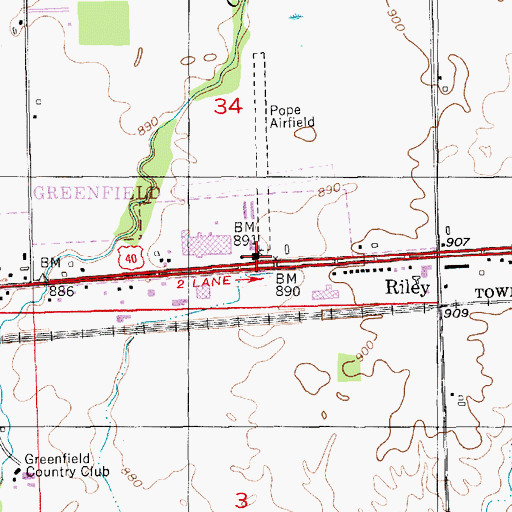 Pope Field, Indiana Pope Field is a airport located in Hancock County, IN at N39.78715° W85.73556° (NAD83) and at an elevation of 889 ft MSL. It can be seen on the USGS 1:24K topographic map Cleveland, IN.