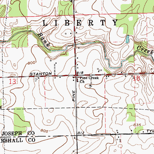 Pine Creek Church, Indiana Pine Creek Church is a church located in St. Joseph County, IN at N41.48477° W86.34890° (NAD83) and at an elevation of 820 ft MSL. It can be seen on the USGS 1:24K topographic map La Paz, IN.
