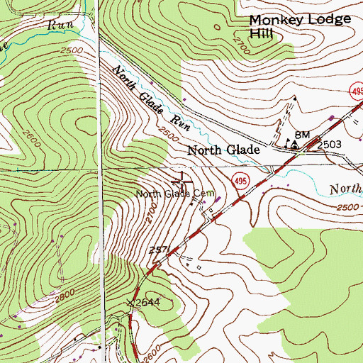 North Glade Cemetery, Maryland North Glade Cemetery is a cemetery located in Garrett County, MD at N39.49926° W79.24476° (NAD83) and at an elevation of 2588 ft MSL. It can be seen on the USGS 1:24K topographic map Kitzmiller, MD.