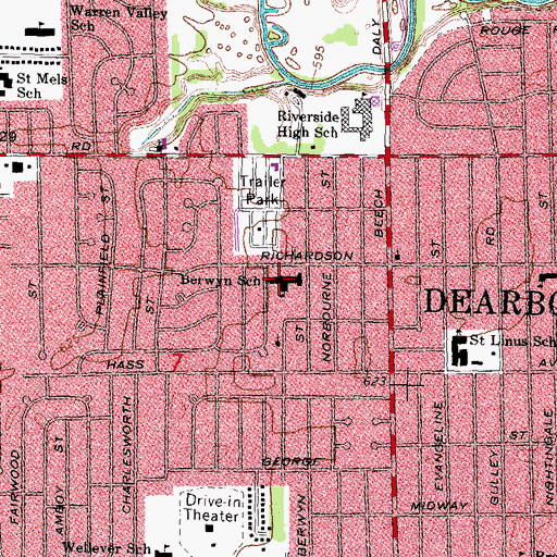 Berwyn School, Michigan Berwyn School is a school located in Wayne County, MI at N42.33670° W83.29743° (NAD83) and at an elevation of 623 ft MSL. It can be seen on the USGS 1:24K topographic map Inkster, MI.