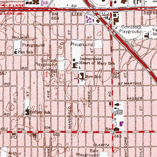 Bow School, Michigan Bow School is a school located in Wayne County, MI at N42.43642° W83.20548° (NAD83) and at an elevation of 666 ft MSL. It can be seen on the USGS 1:24K topographic map Royal Oak, MI.