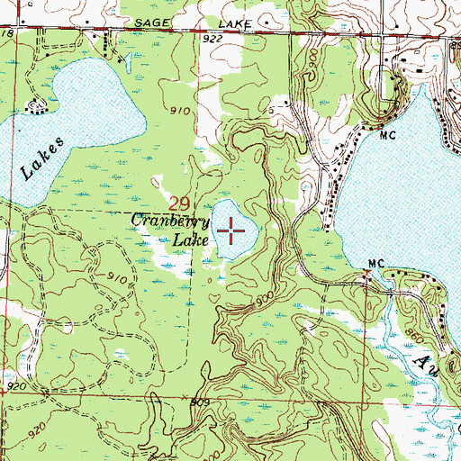 Cranberry Lake, Michigan Cranberry Lake is a lake located in Ogemaw County, MI at N44.35587° W83.97167° (NAD83) and at an elevation of 908 ft MSL. It can be seen on the USGS 1:24K topographic map Sage Lake, MI.