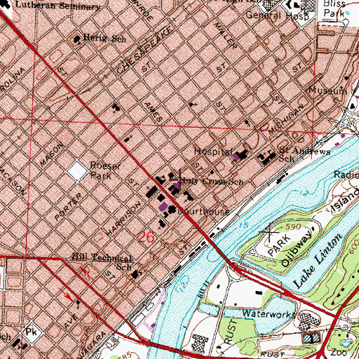 You can view this location or feature in our Topographic Map Viewer now. Click on map above to begin viewing in our Map Viewer. Here are some other places near Holy Cross School that may be of interest: