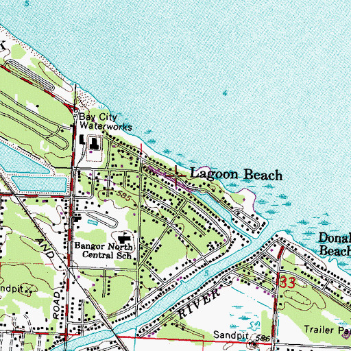 Lagoon Beach, Michigan Lagoon Beach is a populated place located in Bay County, MI at N43.66113° W83.88998° (NAD83) and at an elevation of 587 ft MSL. It can be seen on the USGS 1:24K topographic map Kawkawlin, MI.