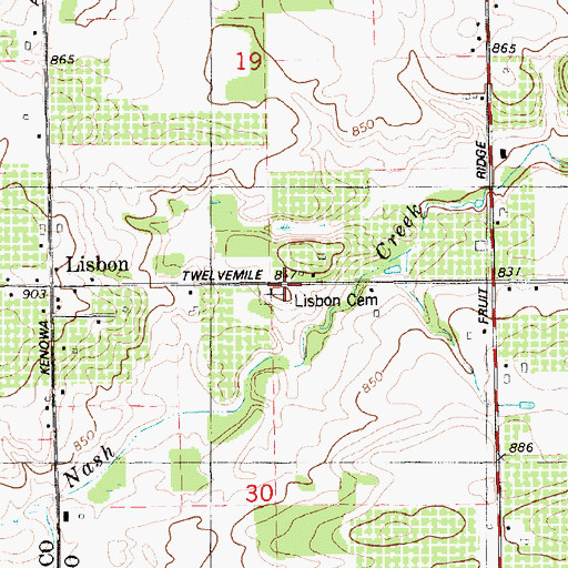 You can view this location or feature in our Topographic Map Viewer now. Click on map above to begin viewing in our Map Viewer. Here are some other places near Lisbon Cemetery that may be of interest: