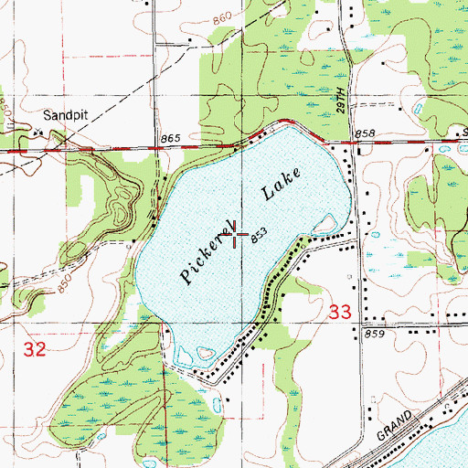 You can view this location or feature in our Topographic Map Viewer now. Click on map above to begin viewing in our Map Viewer. Here are some other places near Pickerel Lake that may be of interest: