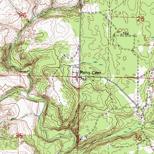 You can view this location or feature in our Topographic Map Viewer now. Click on map above to begin viewing in our Map Viewer. Here are some other places near Reno Cemetery that may be of interest: