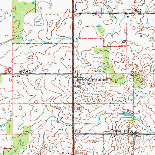 You can view this location or feature in our Topographic Map Viewer now. Click on map above to begin viewing in our Map Viewer. Here are some other places near South Burnside Cemetery that may be of interest: