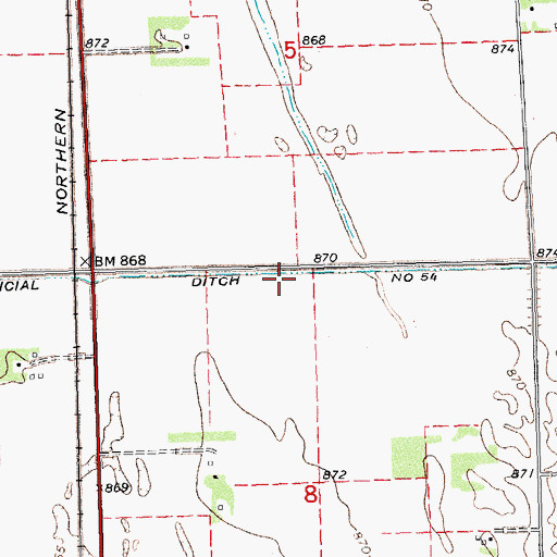 You can view this location or feature in our Topographic Map Viewer now. Click on map above to begin viewing in our Map Viewer. Here are some other places near Judicial Ditch Number Fiftyfour that may be of interest: