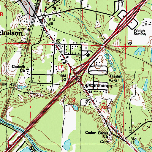 Interchange 1, Mississippi Interchange 1 is a crossing located in Pearl River County, MS at N30.46964° W89.68784° (NAD83) and at an elevation of 36 ft MSL. It can be seen on the USGS 1:24K topographic map Nicholson, MS.