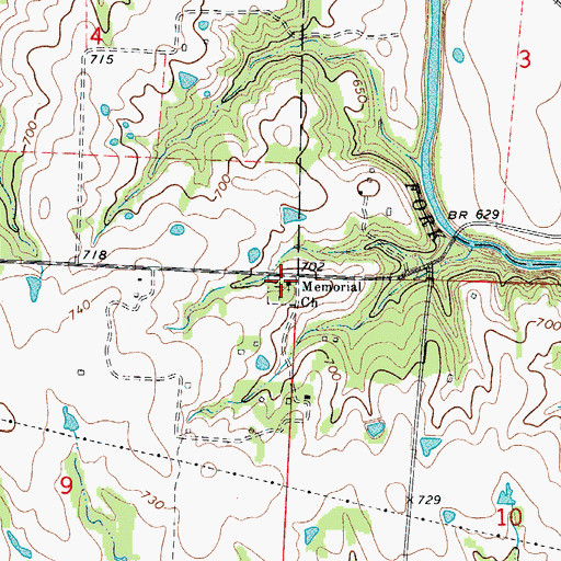 Memorial Church, Missouri Memorial Church is a church located in Saline County, MO at N39.04780° W93.10270° (NAD83) and at an elevation of 708 ft MSL. It can be seen on the USGS 1:24K topographic map Napton, MO.
