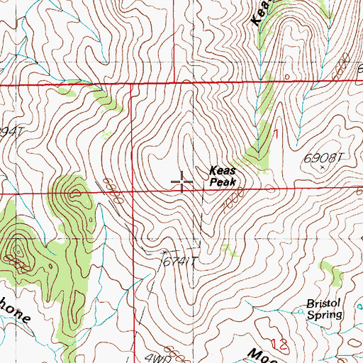 Keas Peak, Nevada Keas Peak is a summit located in Elko County, NV at N41.81963° W115.72453° (NAD83) and at an elevation of 7155 ft MSL. It can be seen on the USGS 1:24K topographic map Tennessee Mountain, NV.