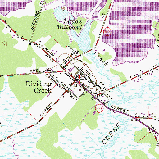 You can view this location or feature in our Topographic Map Viewer now. Click on map above to begin viewing in our Map Viewer. Here are some other places near Dividing Creek that may be of interest: