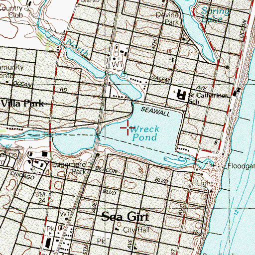 Wreck Pond, New Jersey Wreck Pond is a reservoir located in Monmouth County, NJ at N40.14104° W74.03523° (NAD83) and at an elevation of 0 ft MSL. It can be seen on the USGS 1:24K topographic map Asbury Park, NJ.
