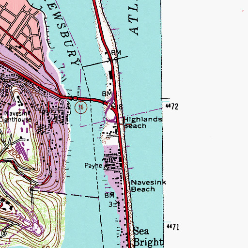 Highlands Beach, New Jersey Highlands Beach is a beach located in Monmouth County, NJ at N40.39428° W73.97597° (NAD83) and at an elevation of 6 ft MSL. It can be seen on the USGS 1:24K topographic map Sandy Hook, NJ.