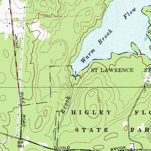Warm Brook, New York Warm Brook is a stream located in St. Lawrence County, NY at N44.50145° W74.92853° (NAD83) and at an elevation of 882 ft MSL. It can be seen on the USGS 1:24K topographic map Colton, NY.