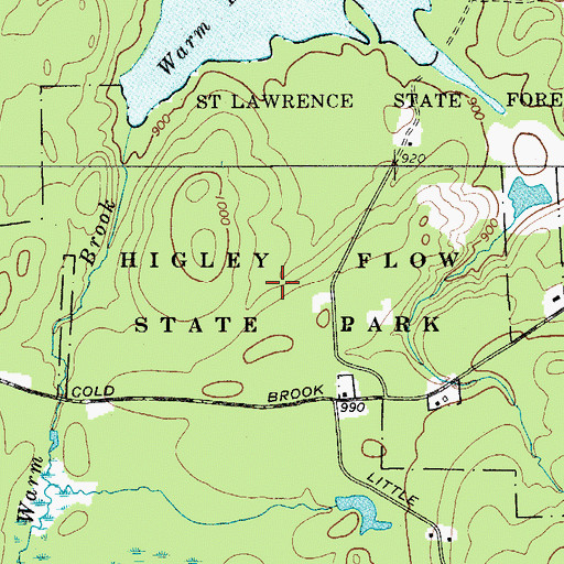 Higley Flow State Park, New York Higley Flow State Park is a park located in St. Lawrence County, NY at N44.49617° W74.92186° (NAD83) and at an elevation of 954 ft MSL. It can be seen on the USGS 1:24K topographic map Albert Marsh, NY.