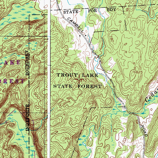 You can view this location or feature in our Topographic Map Viewer now. Click on map above to begin viewing in our Map Viewer. Here are some other places near Trout Lake State Forest that may be of interest: